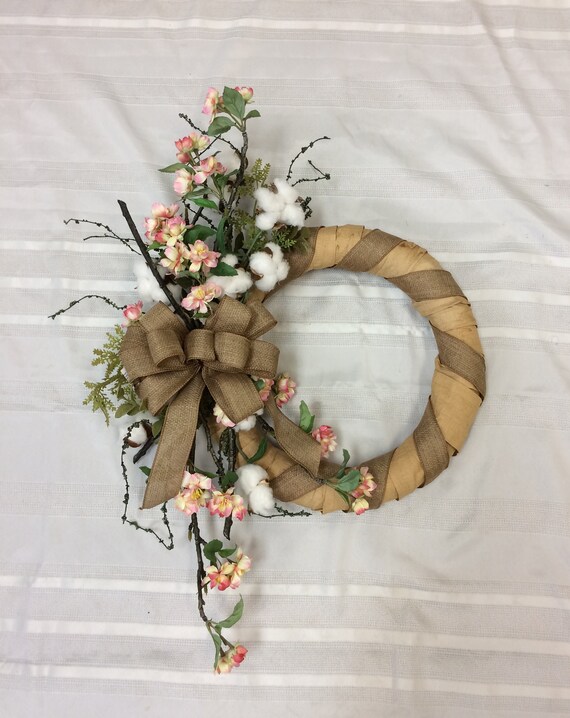 Cotton Wreath Cherry Blossom Wreath Summer Door Decor Etsy