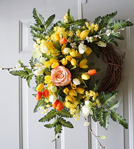 Spring Wreath Yellow White Tulips Roses Cherry Blossom Door Wreath