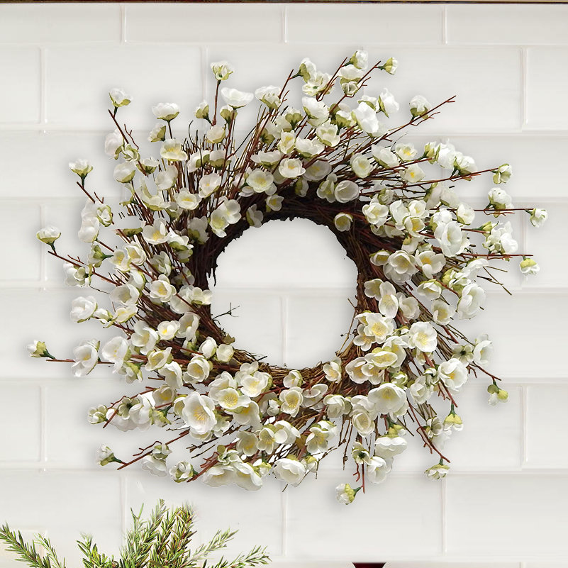 White Cherry Blossom Artificial Spring Summer Wreath Door
