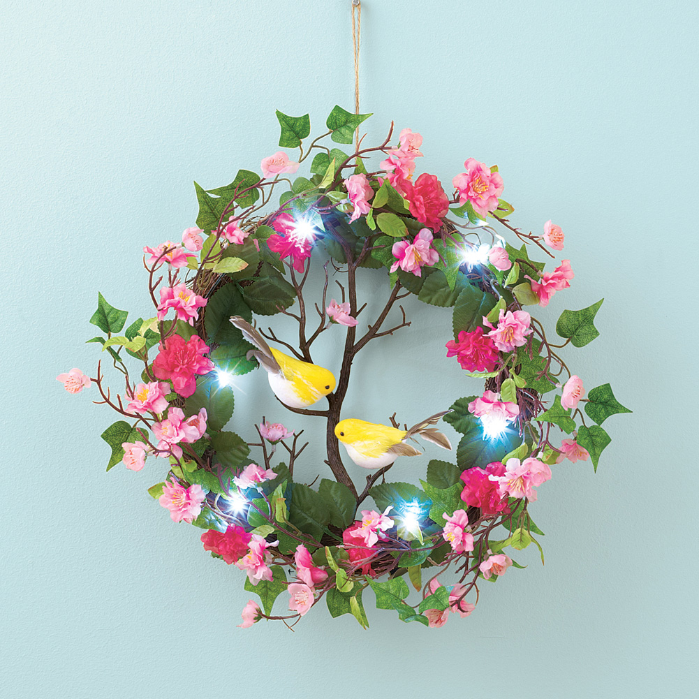 Cherry Blossom Birds Lighted Door Wreath Collections Etc