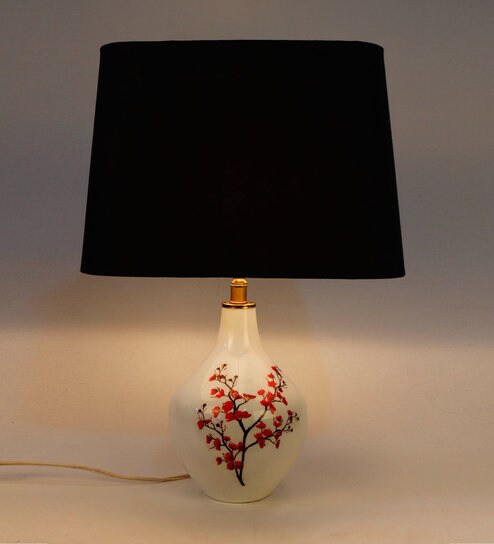 Buy Cherry Blossom Black Fabric Shade Table Lamp With White Base