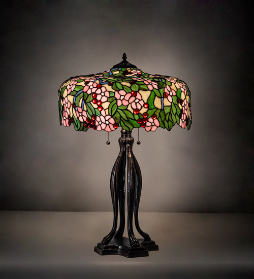 Robert Louis Tiffany Table Lamp Dark Bronze Cherry Blossom Stained