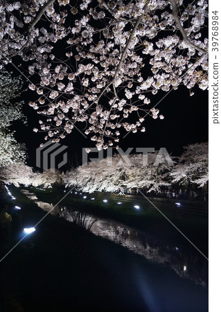 Cherry Trees Lighted Up Along Nogawa River Sazumachi Chofu Shi