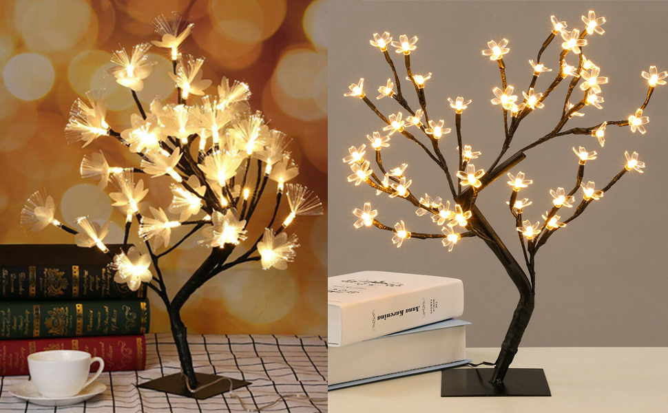 48led Pre Lit Light Up Cherry Blossom Bonsai Tree Table Lamp