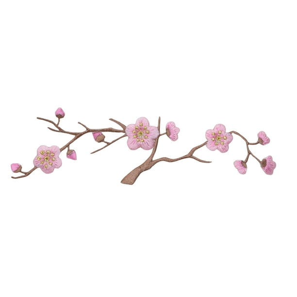 Cherry Blossom Pink Flowers Brown Stem Large Iron On