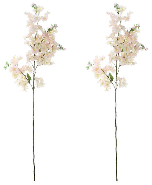 Set Of 2 Faux Cherry Blossom Stem 40 H Cream Pink Transitional