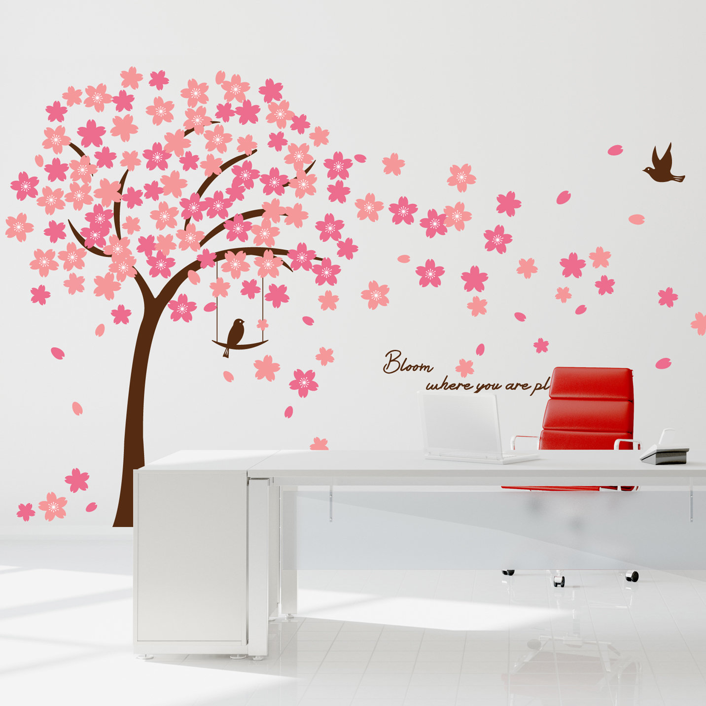 Large Cherry Blossom Tree Wall Decal With Scripted Font Surface