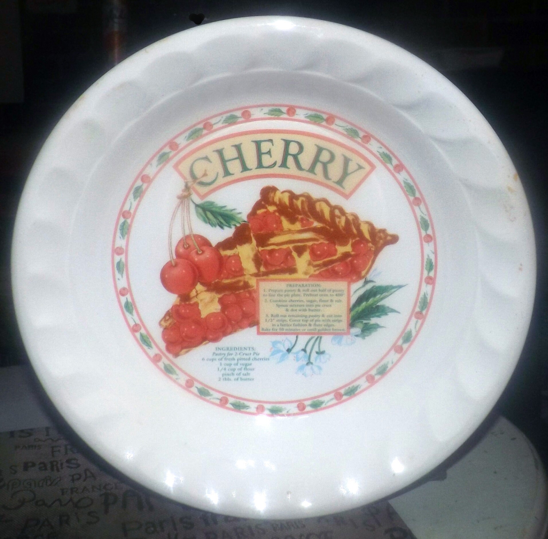 Cherry Pie Plate Pie Dish Vintage Pie Plate With Recipe Cherry Etsy