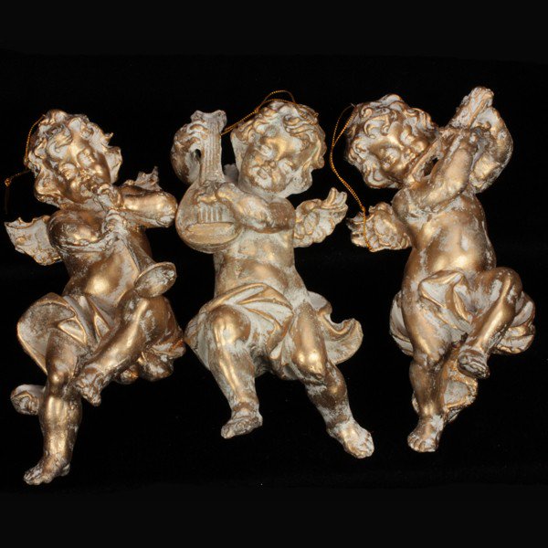 Golden Musical Cherub Christmas Ornaments Set Of 3 4 4 25
