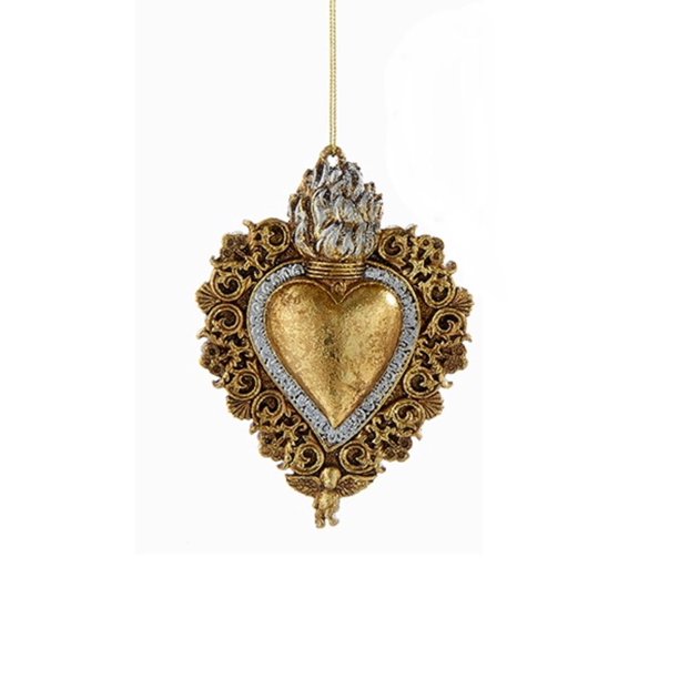 4 25 Gold Religious Flaming Sacred Heart With Cherub Hanging