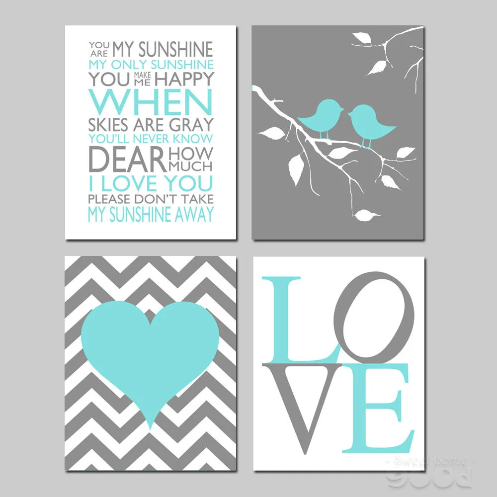 Amazon Com Aqua Mustard Modern Canvas Painting Wall Art