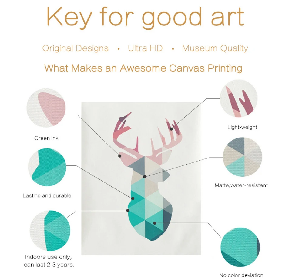 Cartoon Deer Chevron Art Print Canvas Painting Poster Wall