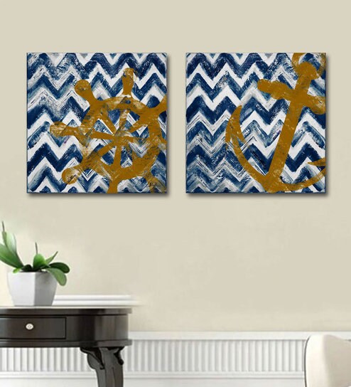 Buy Multicolour Wood Canvas Nautical Chevron Blue Sea Anchor