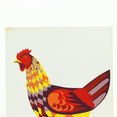 Czechoslovakian Colorful Plastic Wall Art Chicken Ilustration