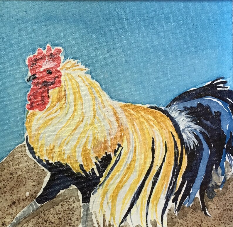 Original Acrylic Painting Whimsical Chicken Wall Art Rooster