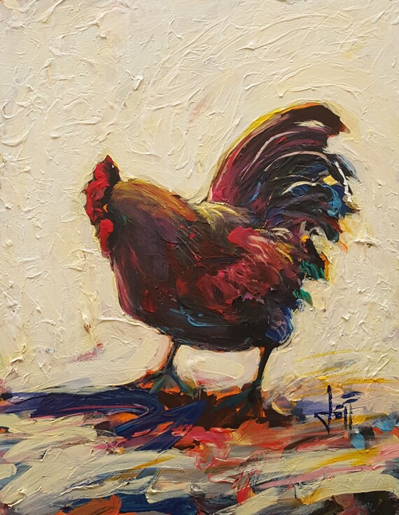 Crazy Chicken Artwork Acrylic Canvas Painting Original Chicken