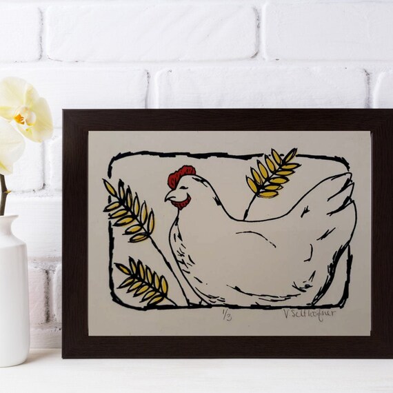 Chicken Screen Print Chicken Wall Decor Chicken Art Etsy