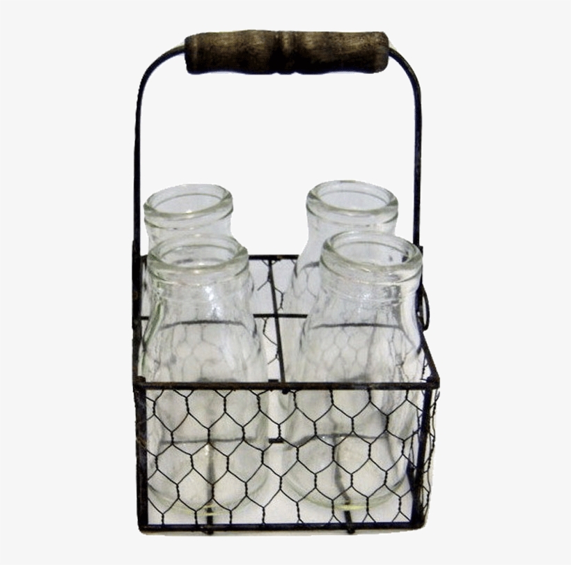 Zinc Chicken Wire Basket With 4 Jars Water Bottle Transparent