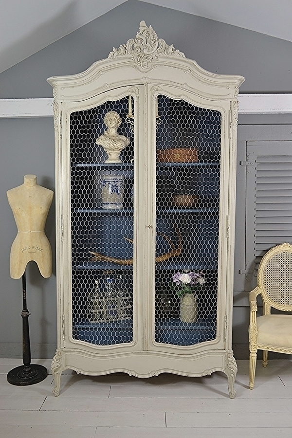 Painted French Armoire With Shelves Chicken Wire Panels Gilli