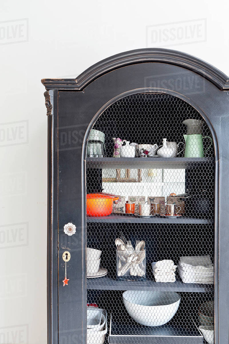 Arched Top Cupboard With Shelving With Chicken Wire Front Stock