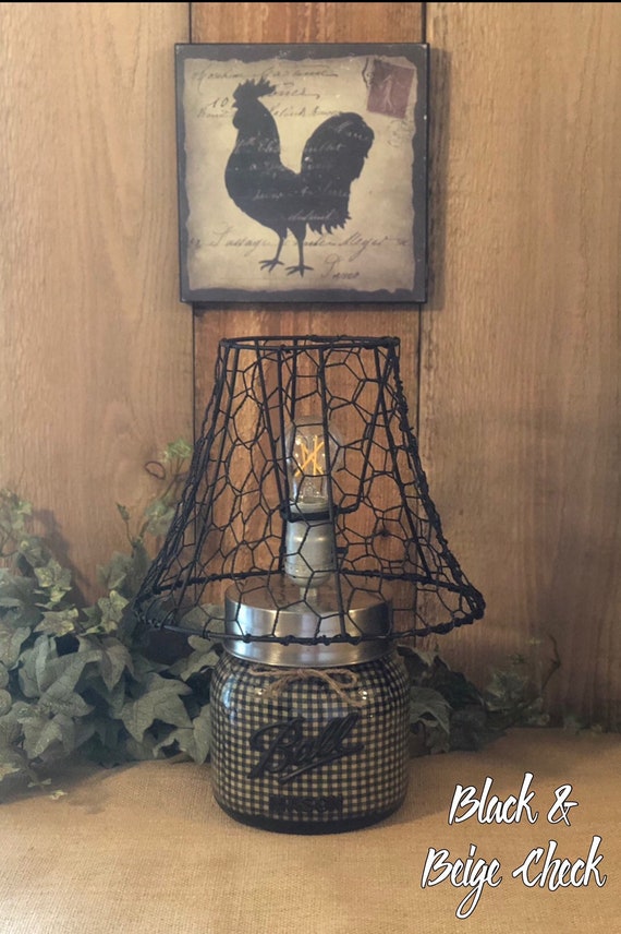 Mason Jar Lamp With Chicken Wire Lamp Shade Etsy