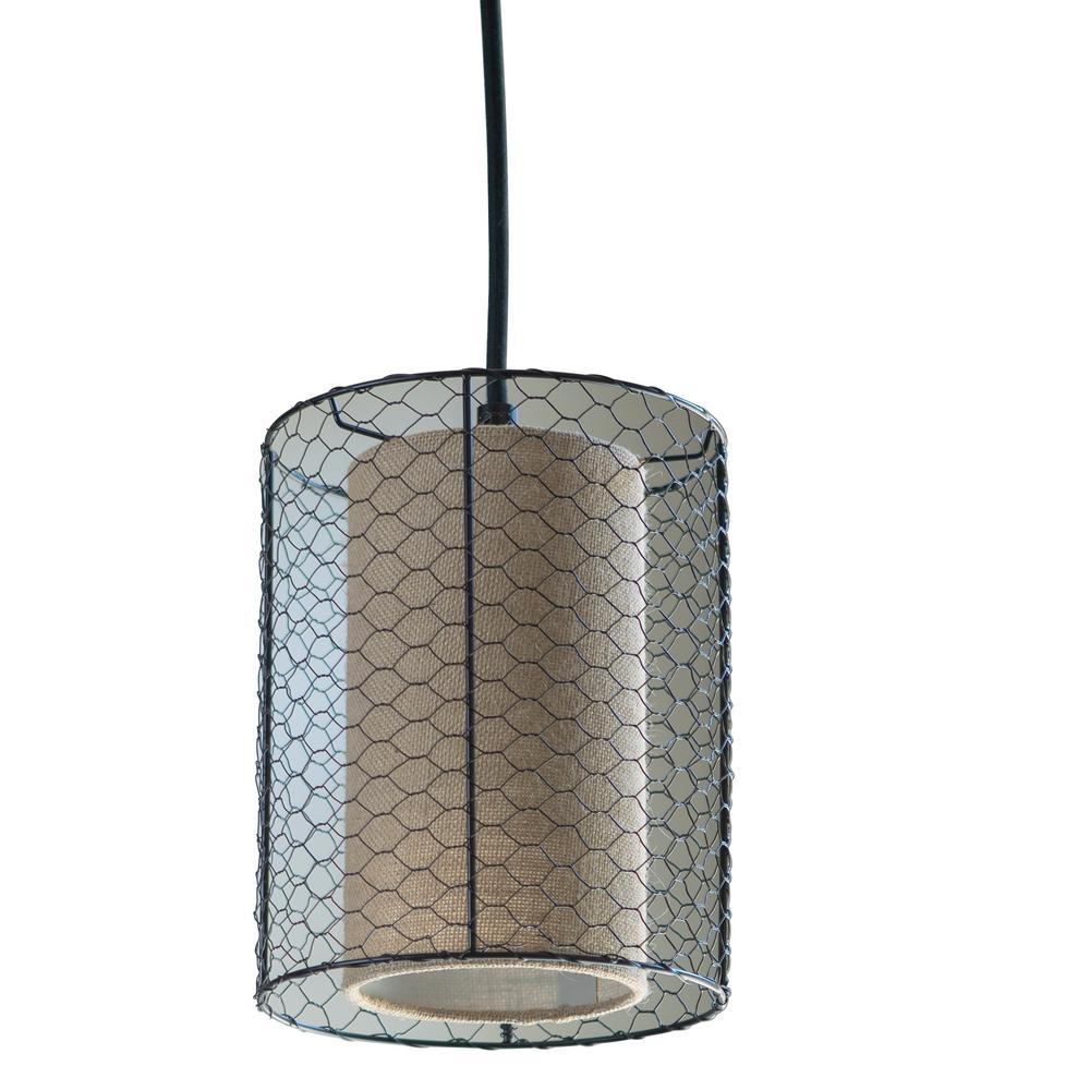 Decor Therapy Cooper Chicken Wire Burlap 1 Light Bronze Pendant
