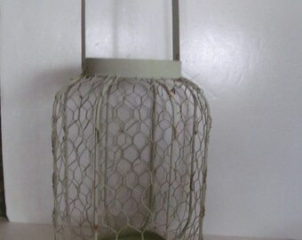 Chicken Wire Lantern Solar Hanging Rustic Primitive Farmhouse