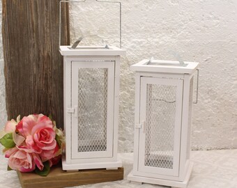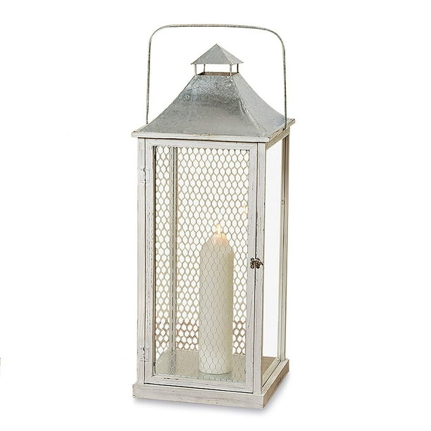 Farmers Market Chicken Wire Candle Lantern White Washed Wood For
