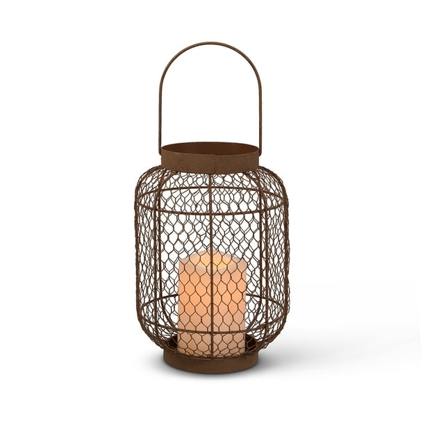 10 05 Inch Tall Rustic Brown Metal Lantern With Chicken Wire Body