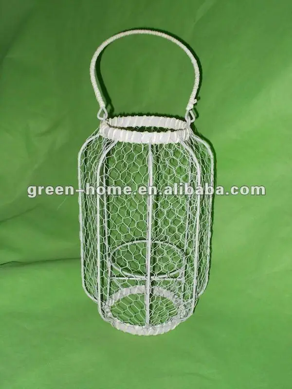 White Chicken Wire Lantern With Handle Buy Wire Frame Lantern