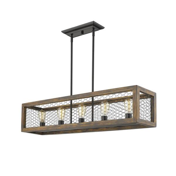 Shop Sutton 5 Light Linear Pendant In Black With Wood Cage And