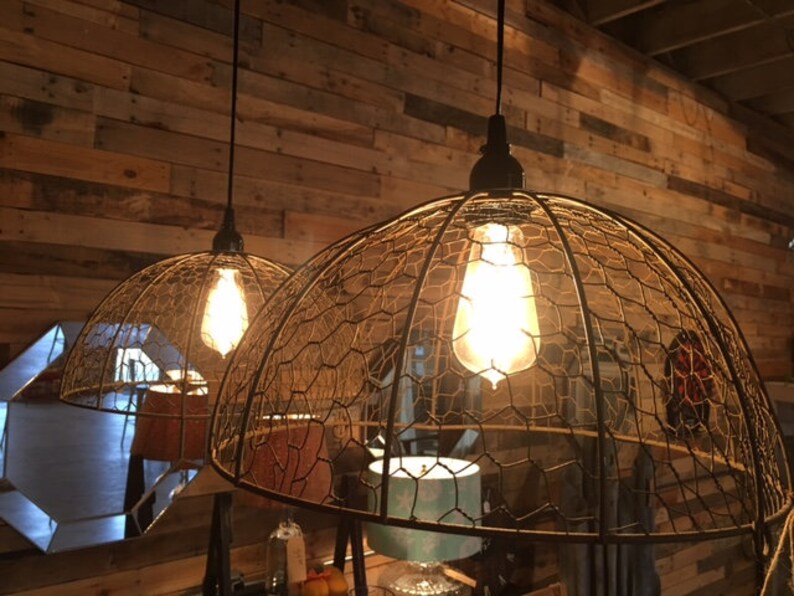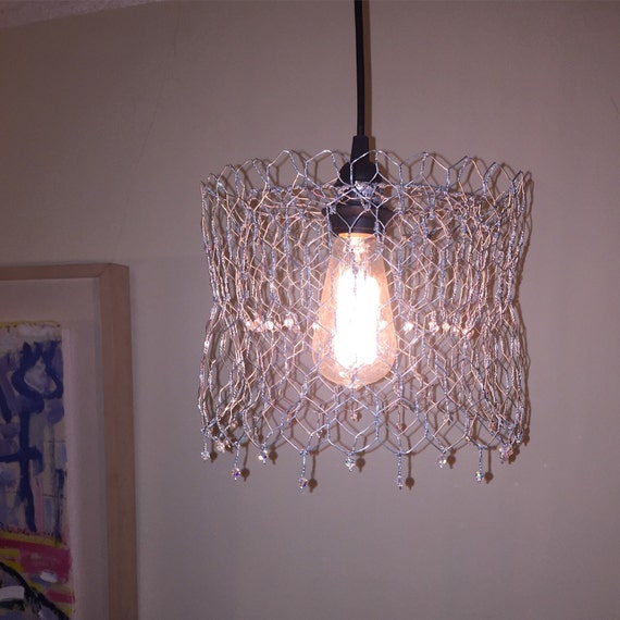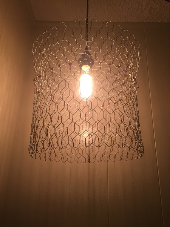 Pendant Hanging Lamp Chandelier Handmade W Chicken Wire And Etsy