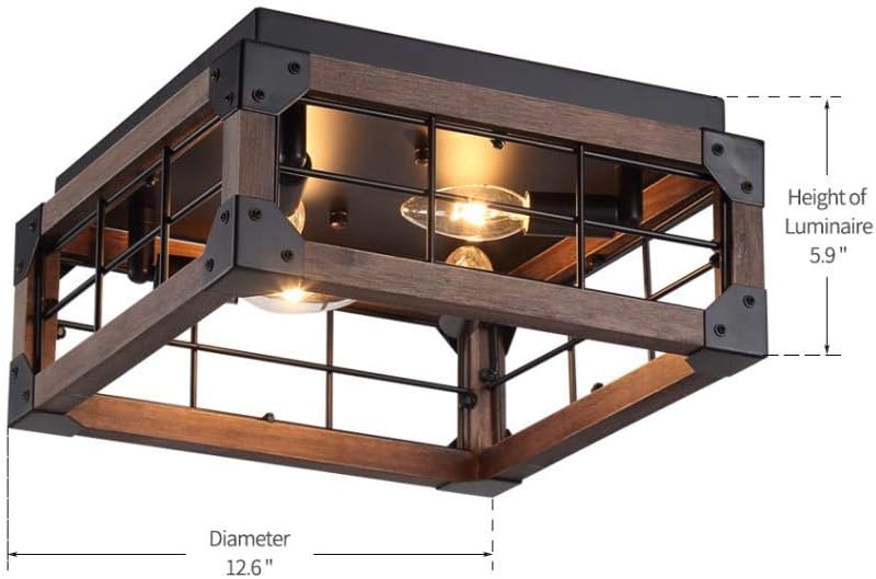 12 6 Inch Square Wood Iron Farmhouse Flush Mount Matte Black Metal