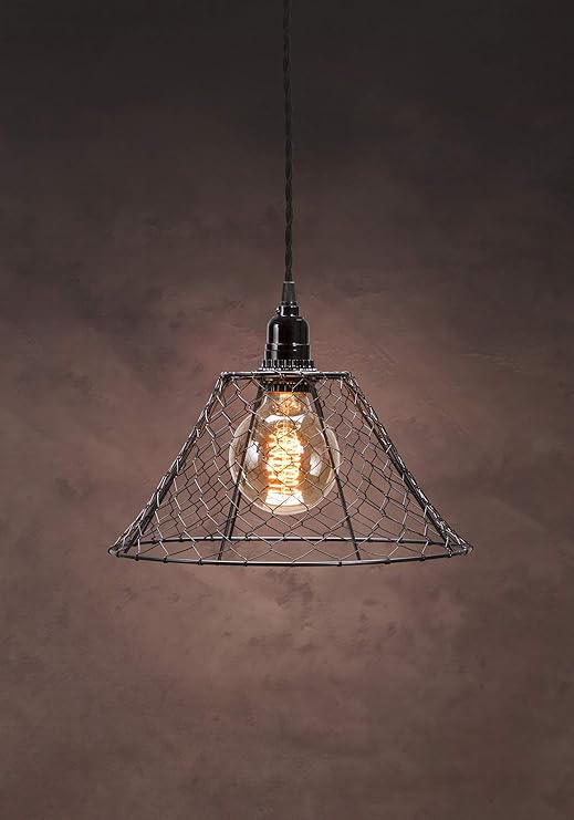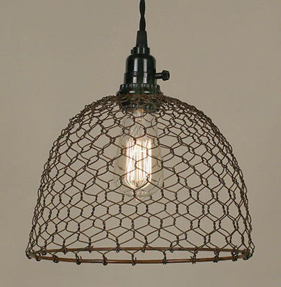 Vintage Chicken Wire Dome Shade With Vintage Single Socket Cord Made Of Black Chicken Wire The Chicken Wire Dome Shade Is 10 High By 8 Wide Single Socket Cord Is A Pendant Lamp
