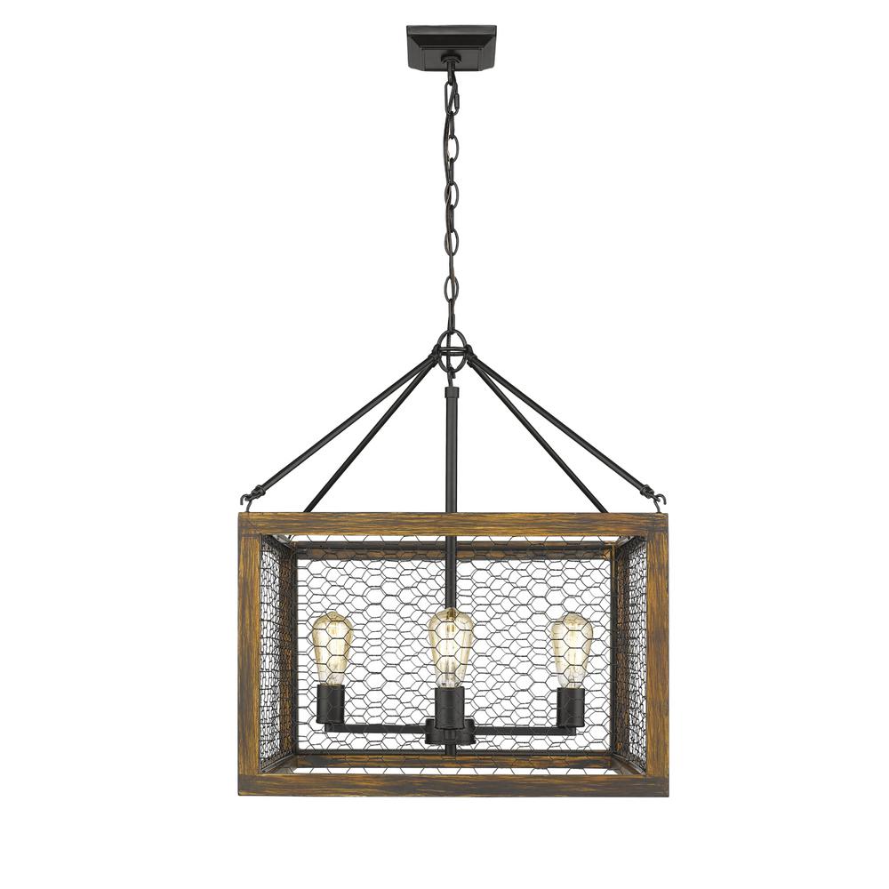 Golden Lighting Sutton 4 Light Pendant In Black With Wood Cage And Black Chicken Wire Panels 0270 4 Blk Blk The Home Depot