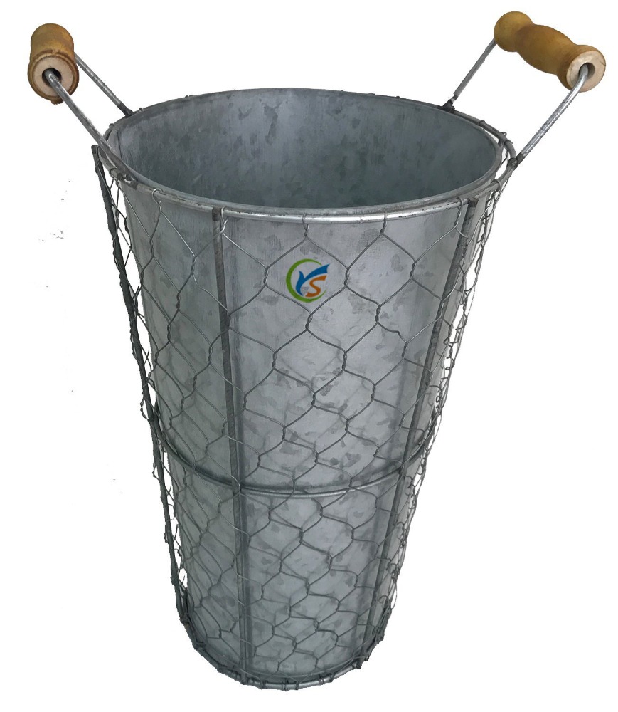 Amazon Com Galvanized Metal Bucket Planter With Chicken Wire