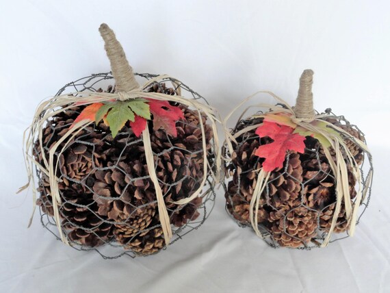 Chicken Wire Autumn Pumpkin Decor Pine Cone Filling Green Red Etsy