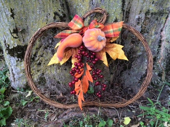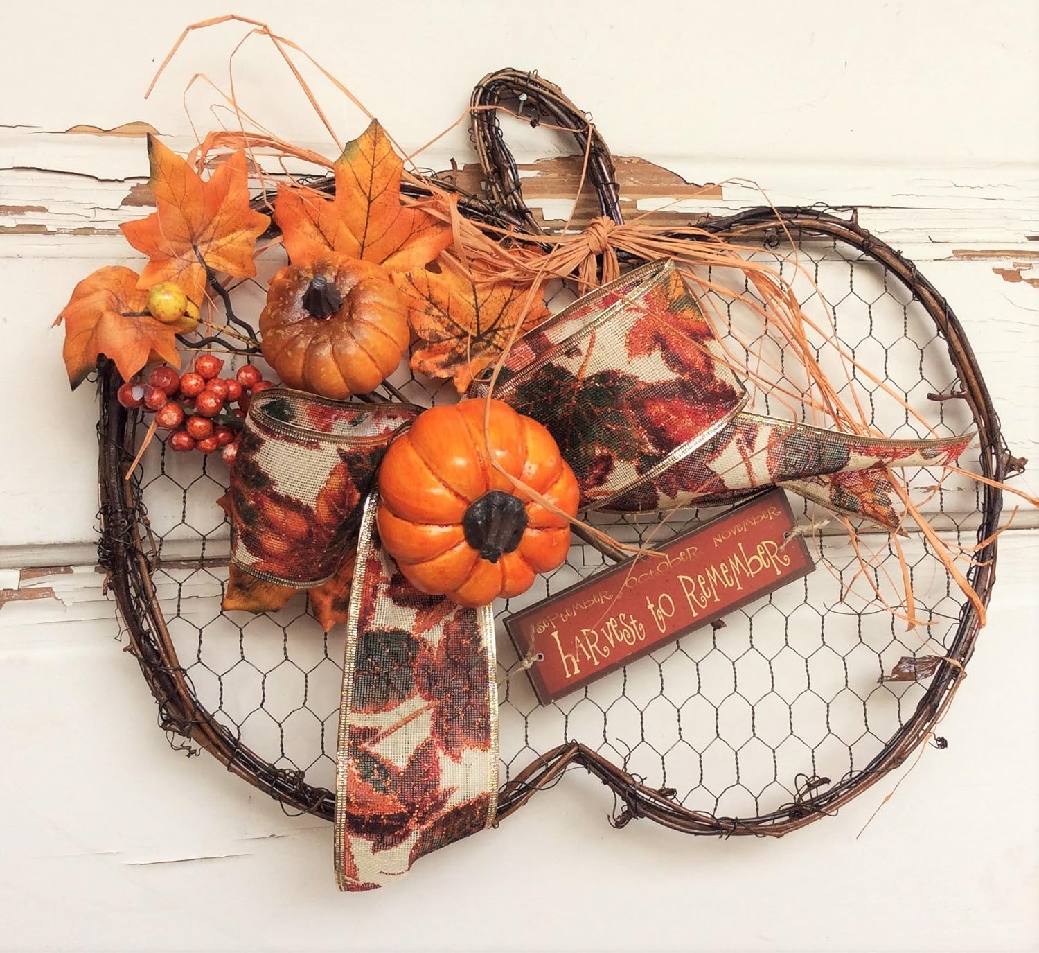 Flat Grapevine Chicken Wire Pumpkin Enjoy Fall Wreath Agd Fall Decor