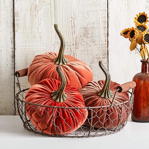 Amazon Com Large Velvet Pumpkins And Basket Set Table