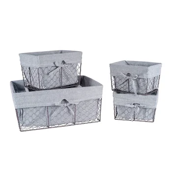 China Metal Chicken Wire Storage Basket With Fabric Liner Food