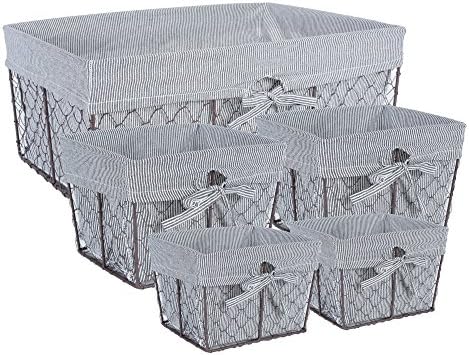 Dii Vintage Chicken Wire Basket Removable Fabric Liner Set Of 2