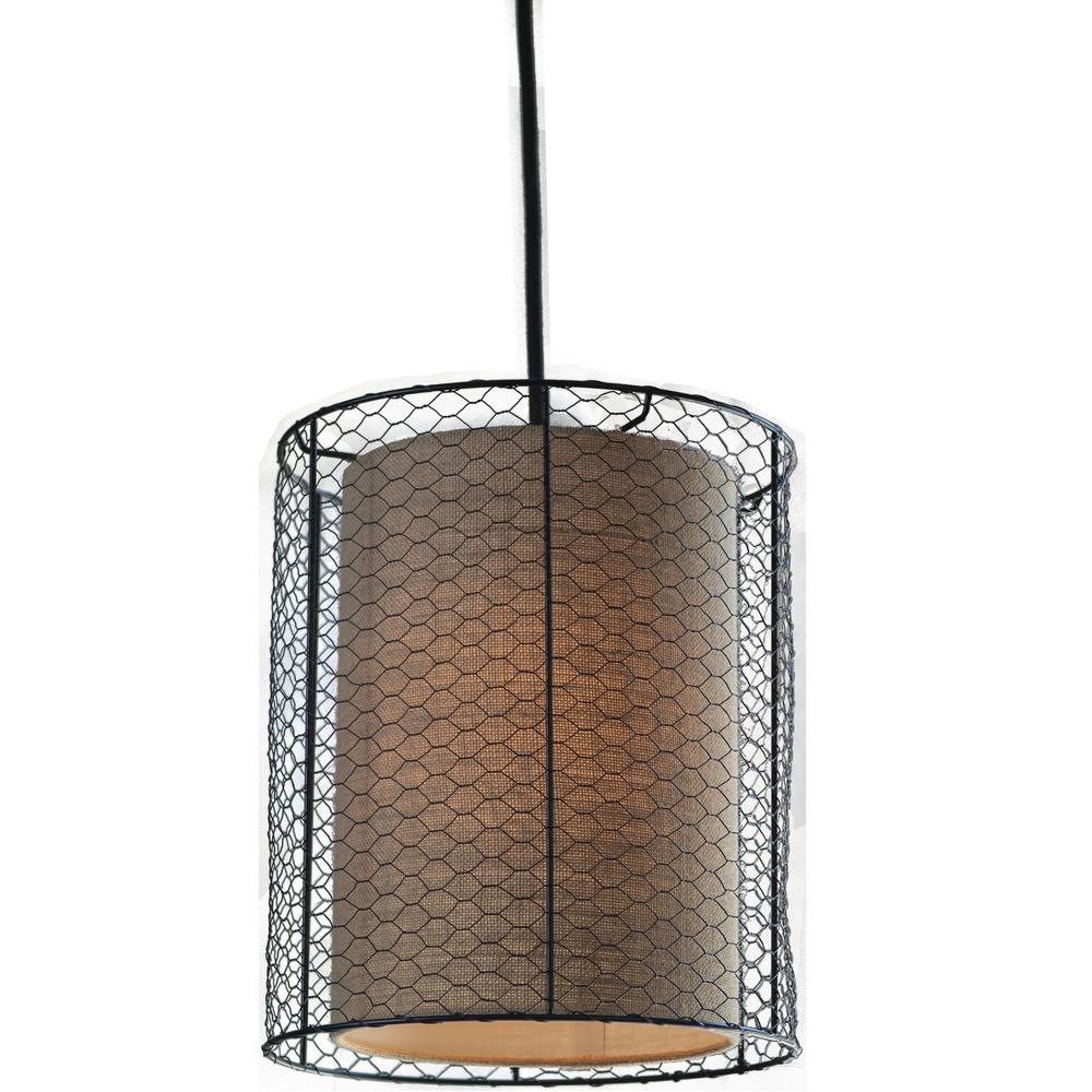 Decor Therapy Cooper Chicken Wire Burlap 1 Light Bronze Pendant