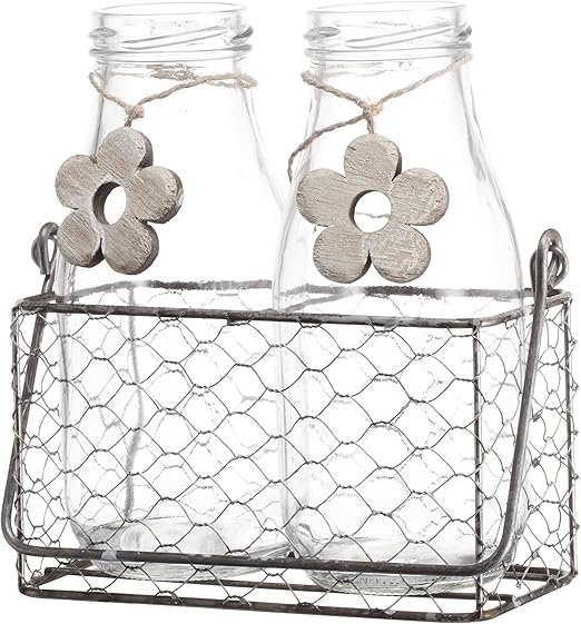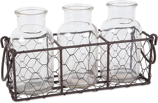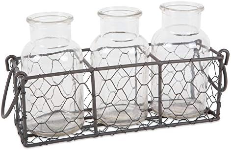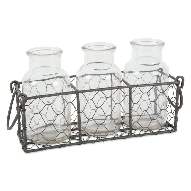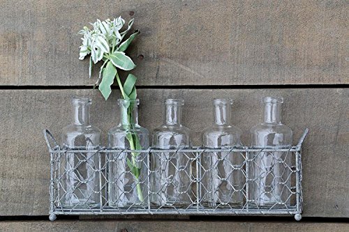 Bcd Chicken Wire Holder W 5 Clear Glass Bottles Flower Vases