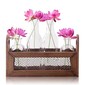 Bud Flower Vases In Wooden Rack With Chicken Wire 4 Piece