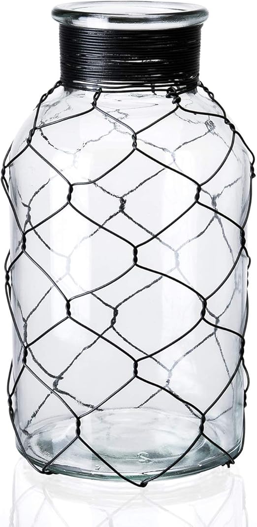 Glass Chicken Wire Vase Wide Mouth 7 1 2 Dia X 10 1 2 H Buy