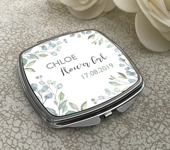 Personalised Flower Girl Compact Mirror Wedding Gift Floral Etsy