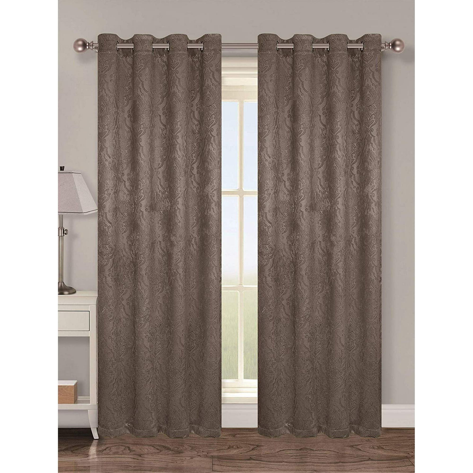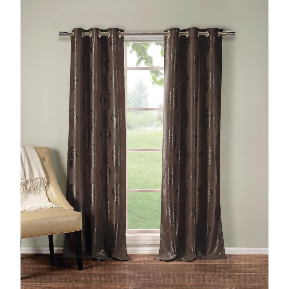 Hlc Me Chocolate Brown Nadia Damask Jacquard Curtain Panel Set