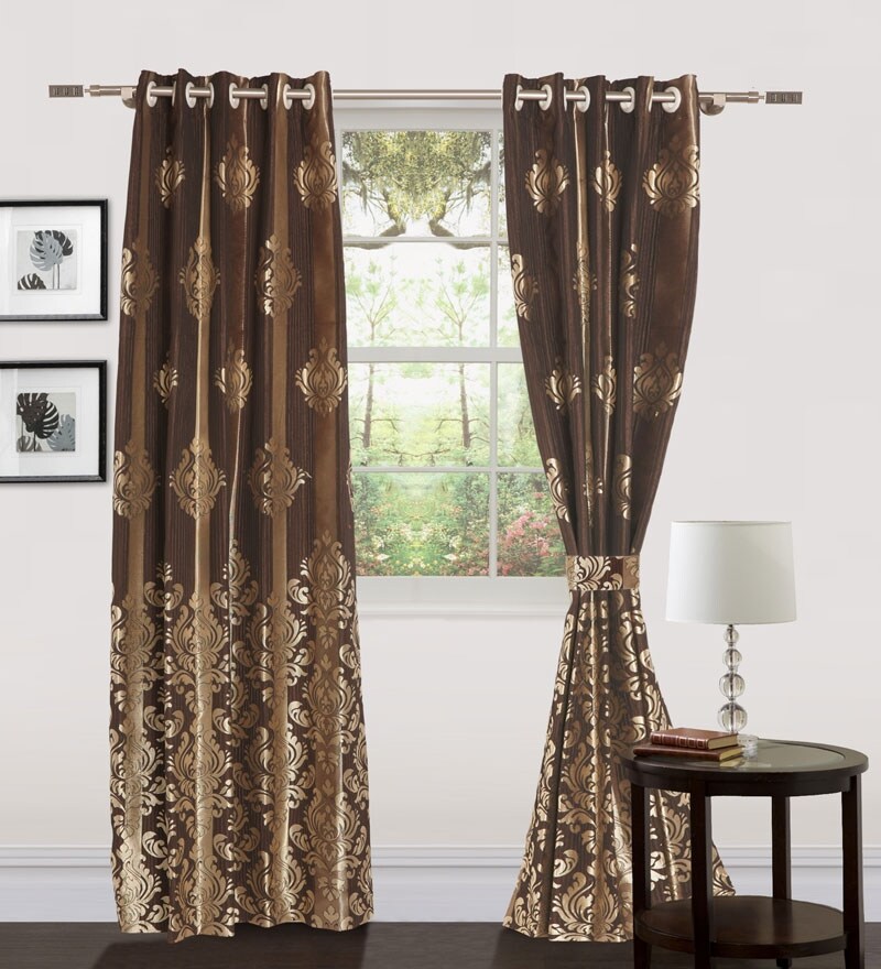 Online Handloomhub Designer Chocolate Brown Curtain Set Of 2