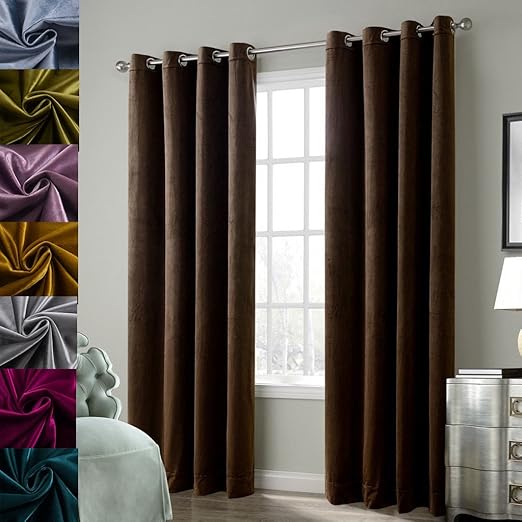Amazon Com Cherry Home Set Of 2 Blackout Velvet Drapes Room Darkening Curtains Panel Grommet Drapery 52 By 96 Inch Chocolate Brown 2 Panels Theater Bedroom Living Room Hotel Kitchen Dining
