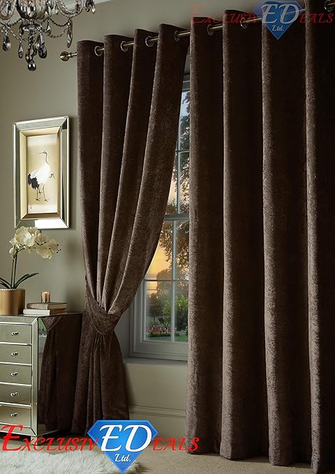 Ed Crushed Velvet Curtains Pair Eyelet Ring Top Fully Lined With Tie Backs 46 Wide X 54 Drop Brown Amazon Co Uk Kitchen Home